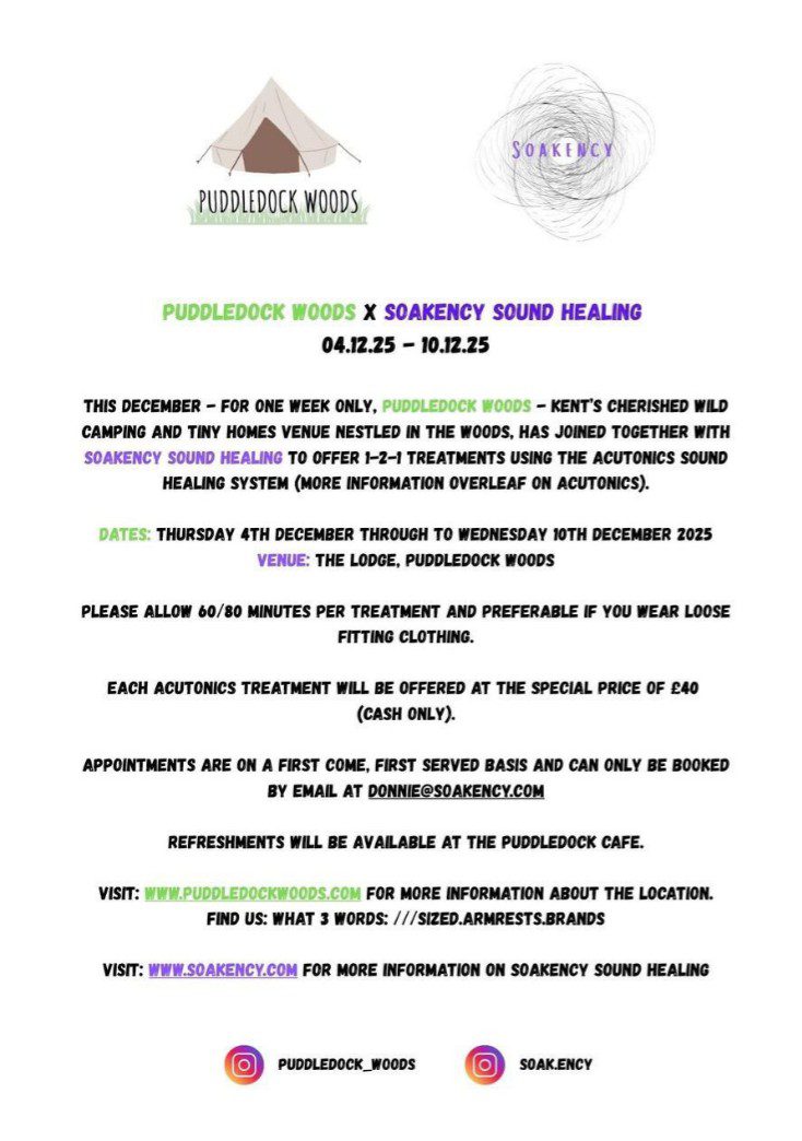 Puddledock Woods plays host to numerous special events throughout the year, from workshops and wellness events to gigs and private parties – bolstered in 2025 by the addition of a fully-licenced bar and guest lounge.